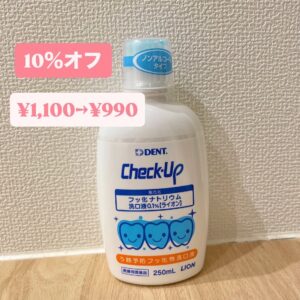 チェックアップ洗口液の特徴は、手軽で続けやすい液体タイプの虫歯予防フッ化物洗口液です。